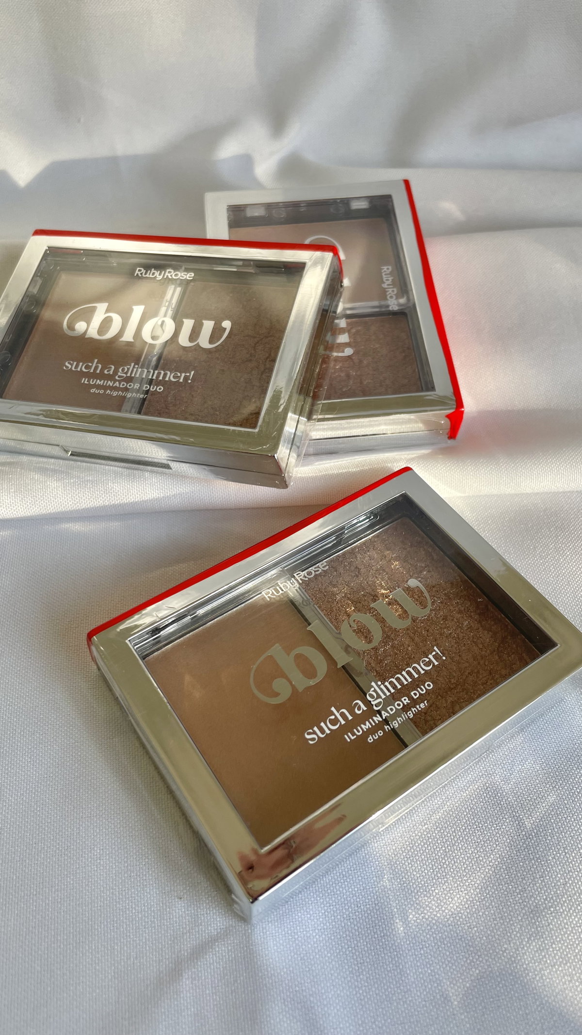 El iluminador cremoso presenta una fórmula ultraligera que se integra perfectamente en el maquillaje, proporcionando un efecto piel húmeda y un brillo de espejo. El iluminador en polvo, de textura suave y tacto sedoso, contiene partículas que reflejan la luz y garantizan un acabado refinado y luminoso, ideal para resaltar puntos estratégicos de forma natural.