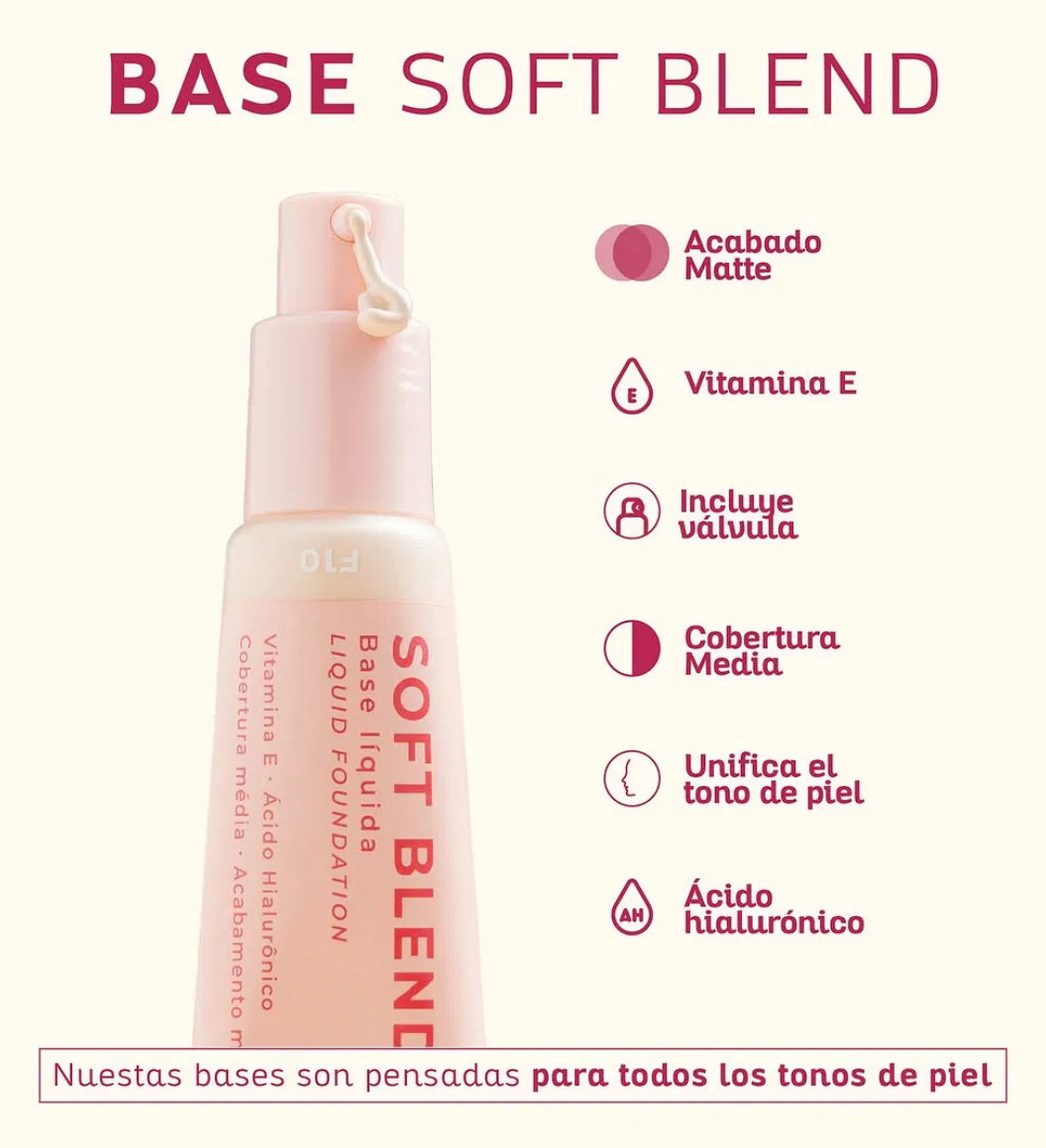 La base liquidable Soft Blend de Ruby Rose se funde a la perfección con la piel, proporcionando una textura suave y uniforme.