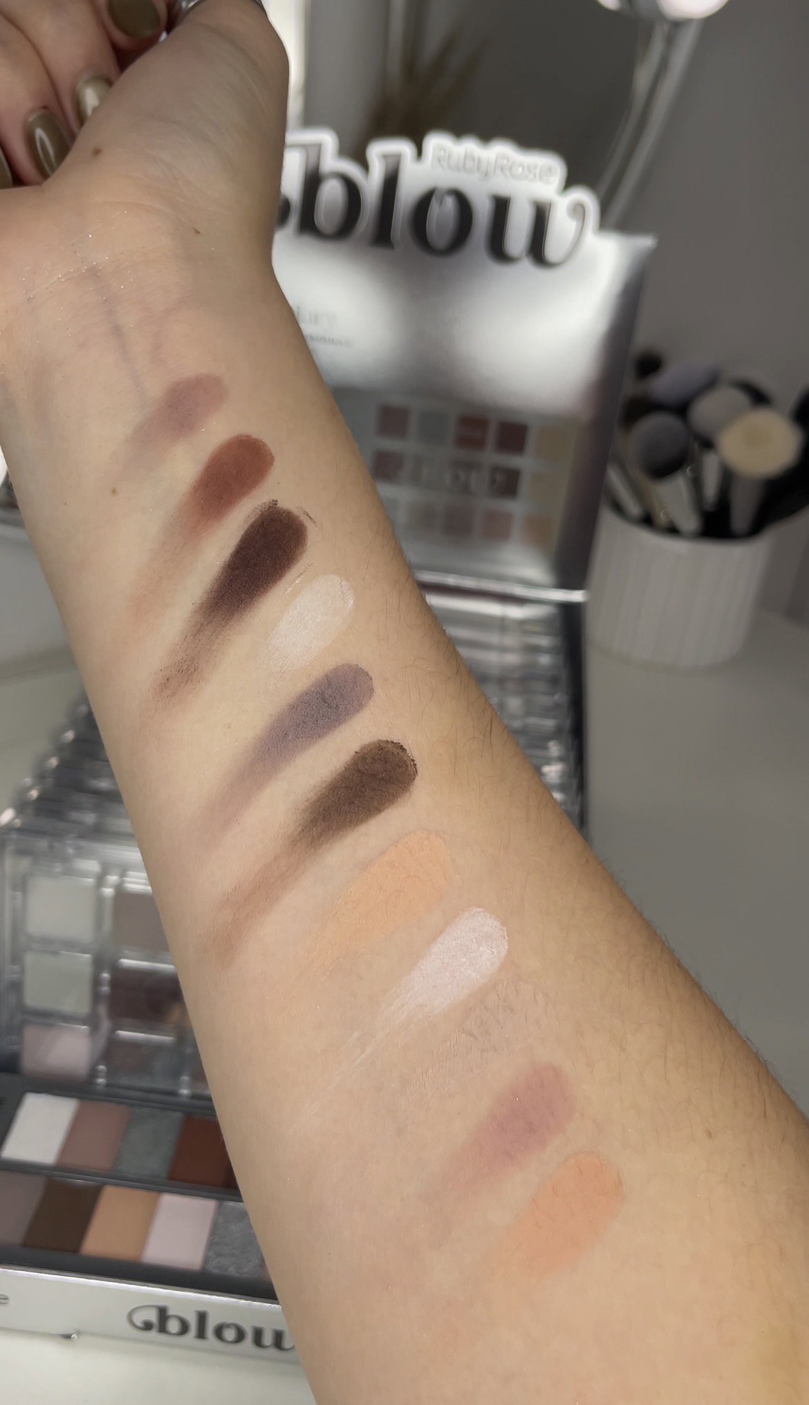 Modo de uso: Aplica las sombras en los párpados como desees, con una brocha o con las yemas de los dedos.